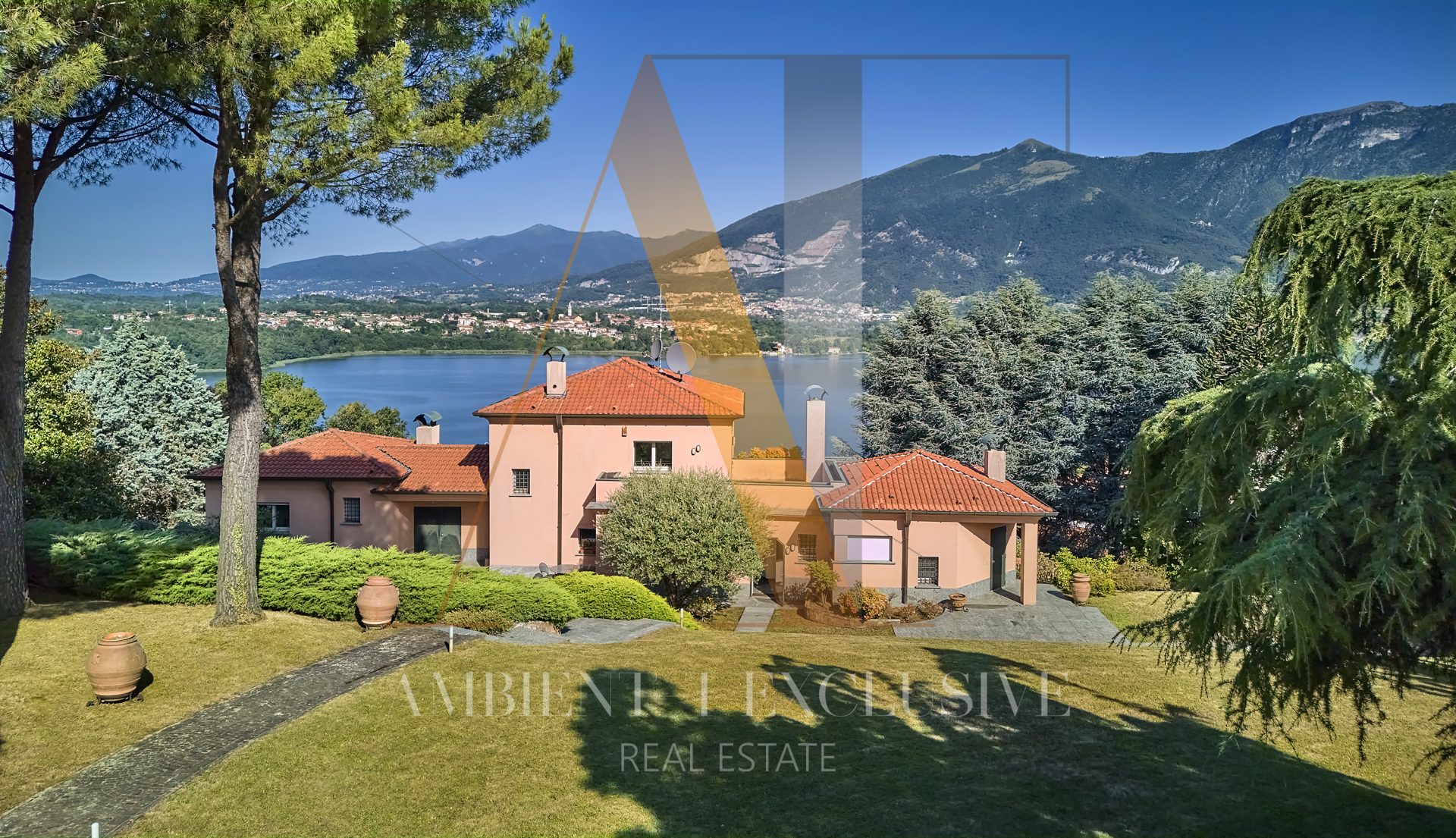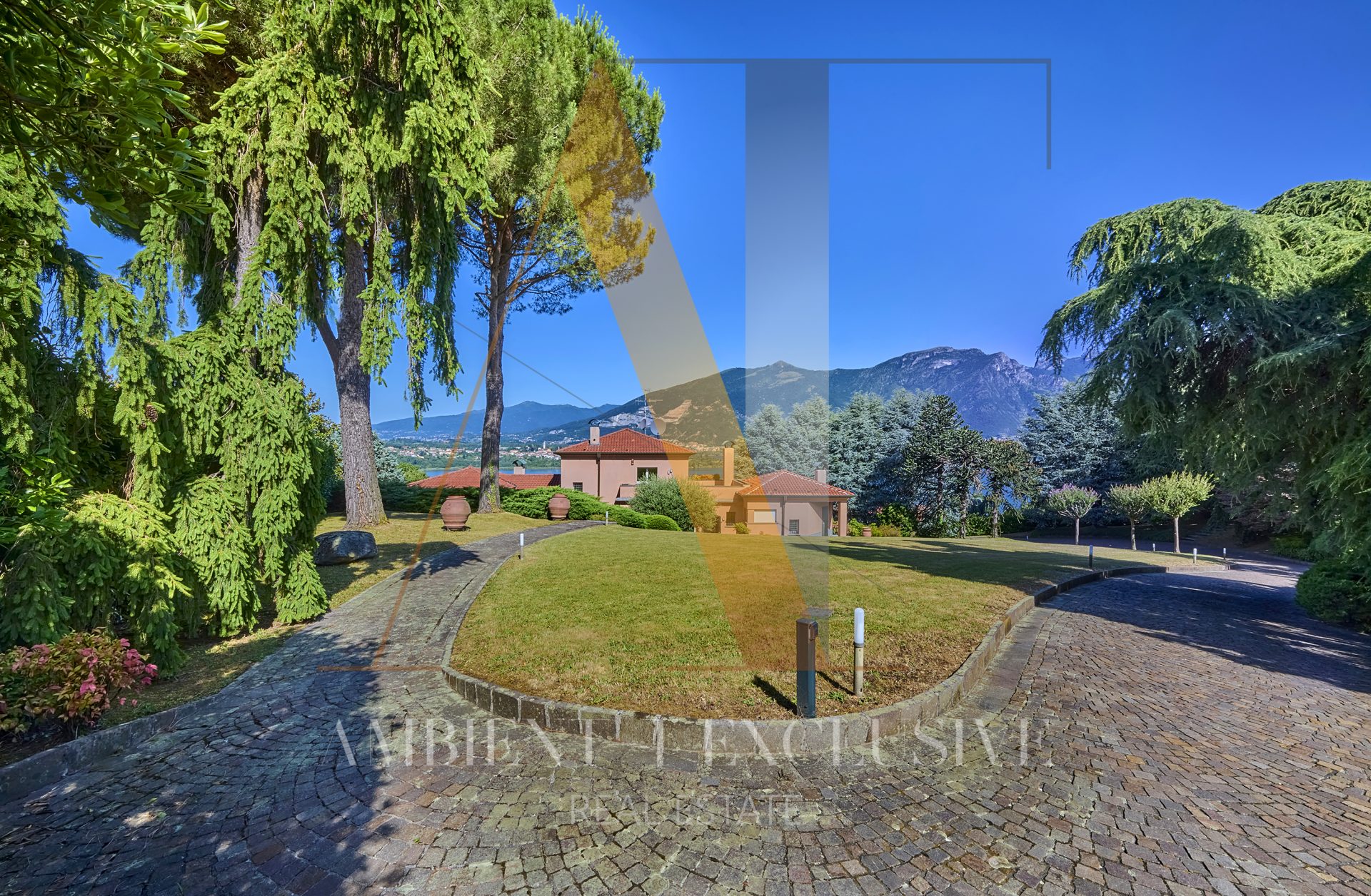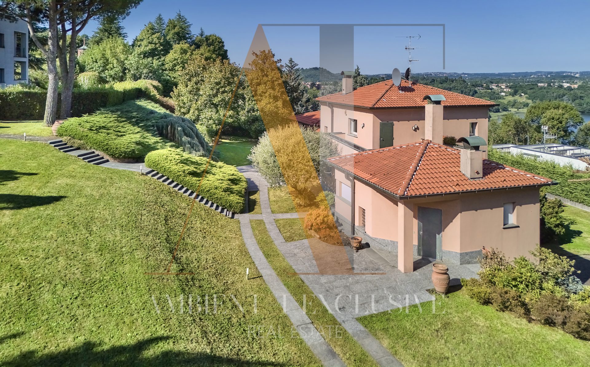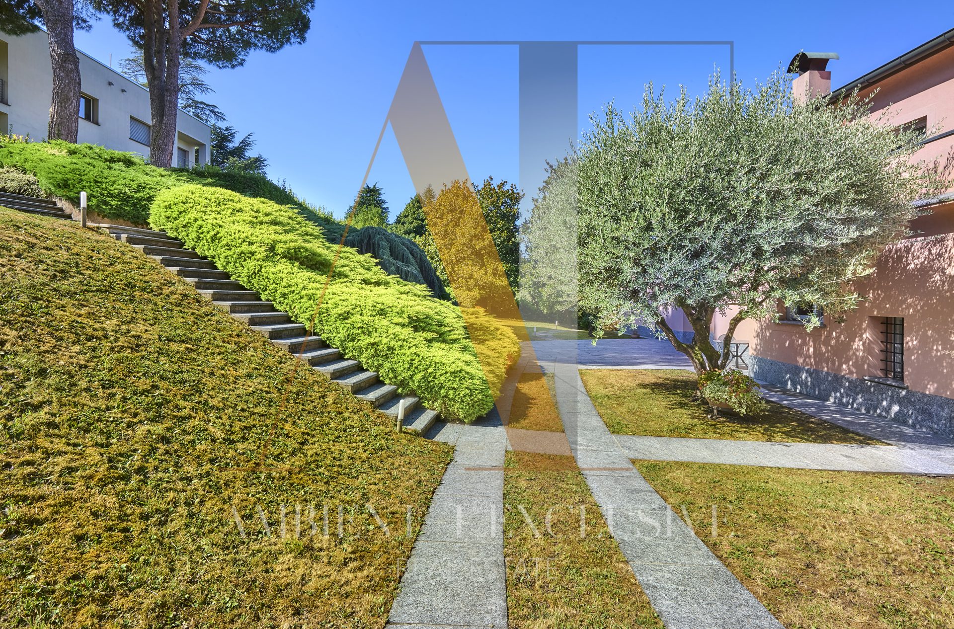 OGGIONO, COLLINA DI IMBERIDO: Affacciata sul Lago di Annone, una delle propaggini a sud del Lago di Como, si distende una importante proprietà unifamiliare progettata dall’Arch. Gregorio Caccia Dominioni nel 1988; un ampio e curato giardino digrada verso il lago e circonda una villa di alto standing, studiata dal proprietario per accogliere la propria famiglia e frequenti ospiti: la villa è infatti strutturata sostanzialmente in tre parti: quella centrale, con due piani fuori terra dedicata alla famiglia, quella a sud-ovest per gli ospiti e quella a nord-est adibita a casa dei custodi.