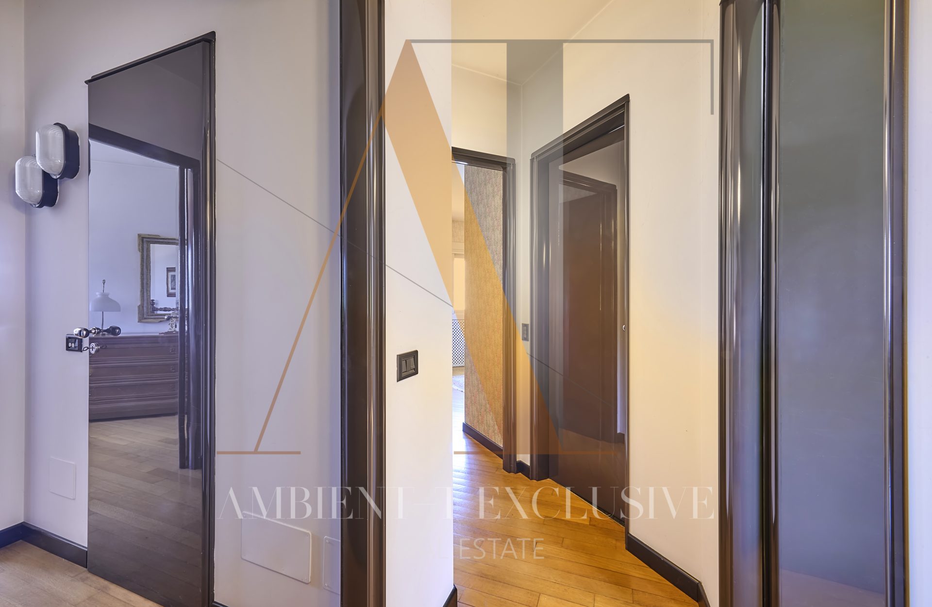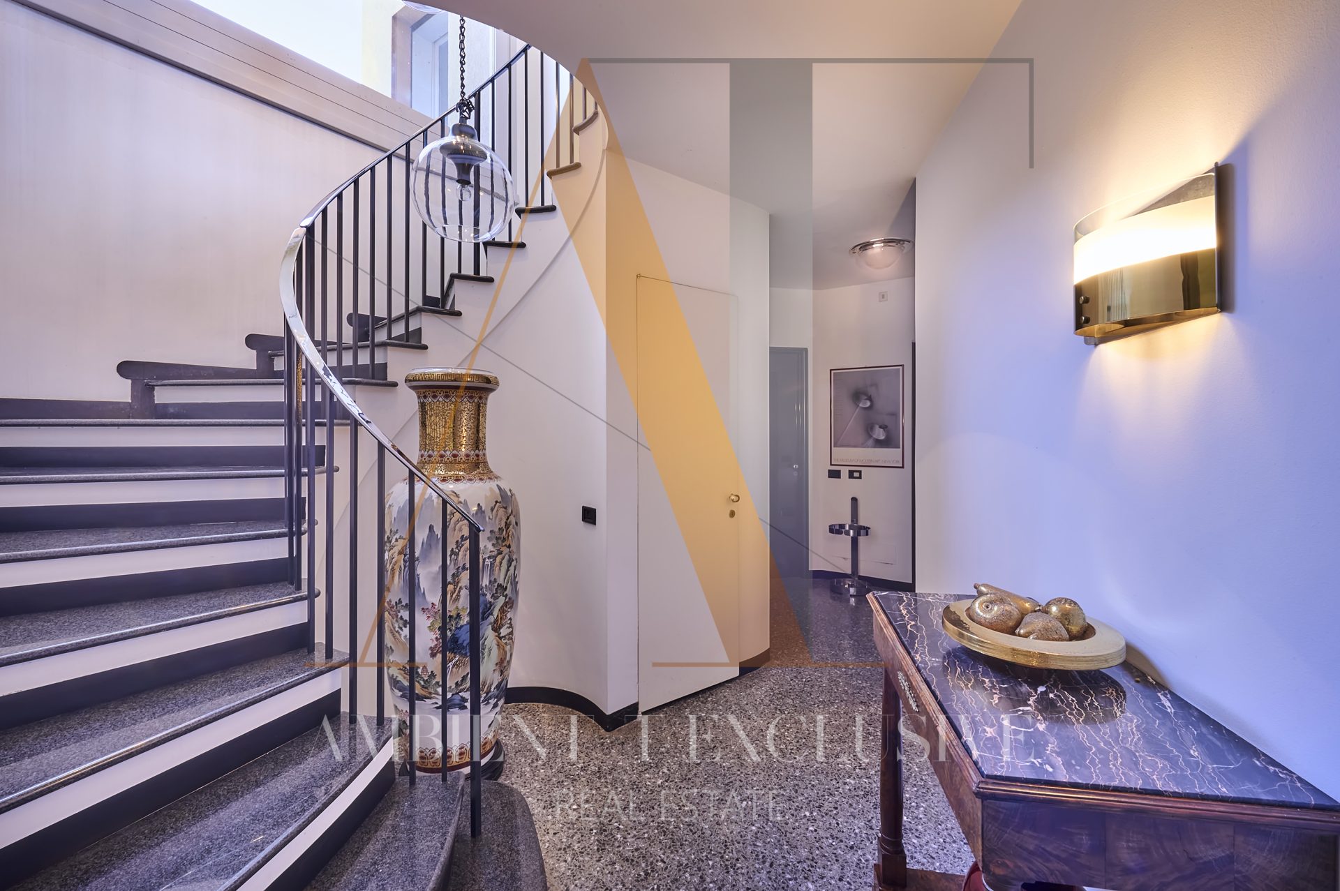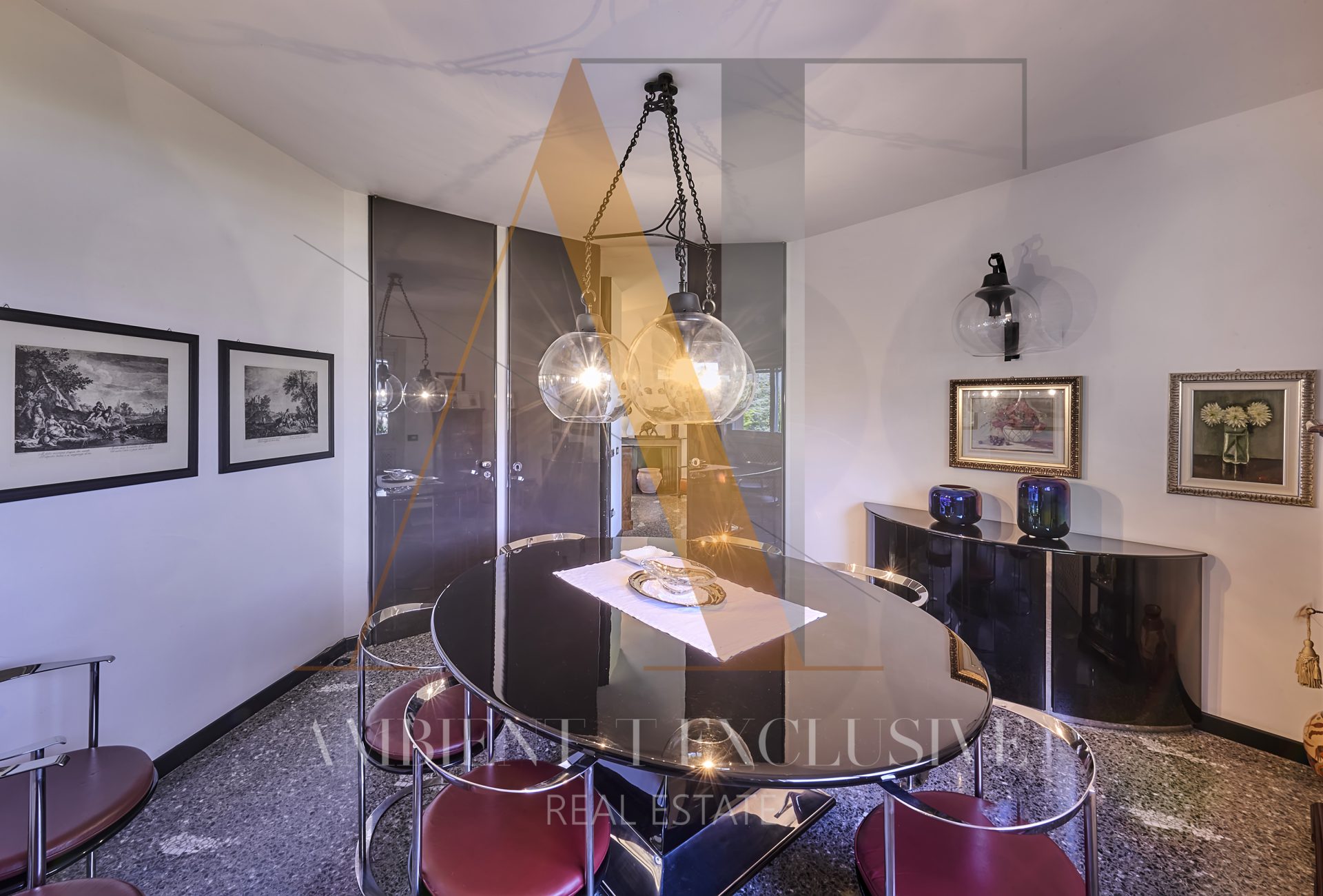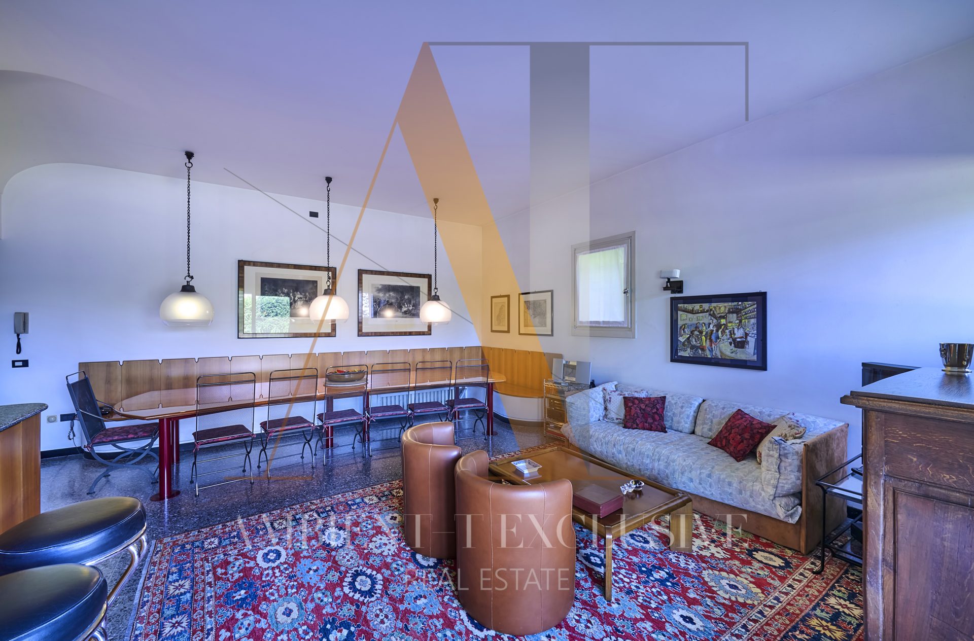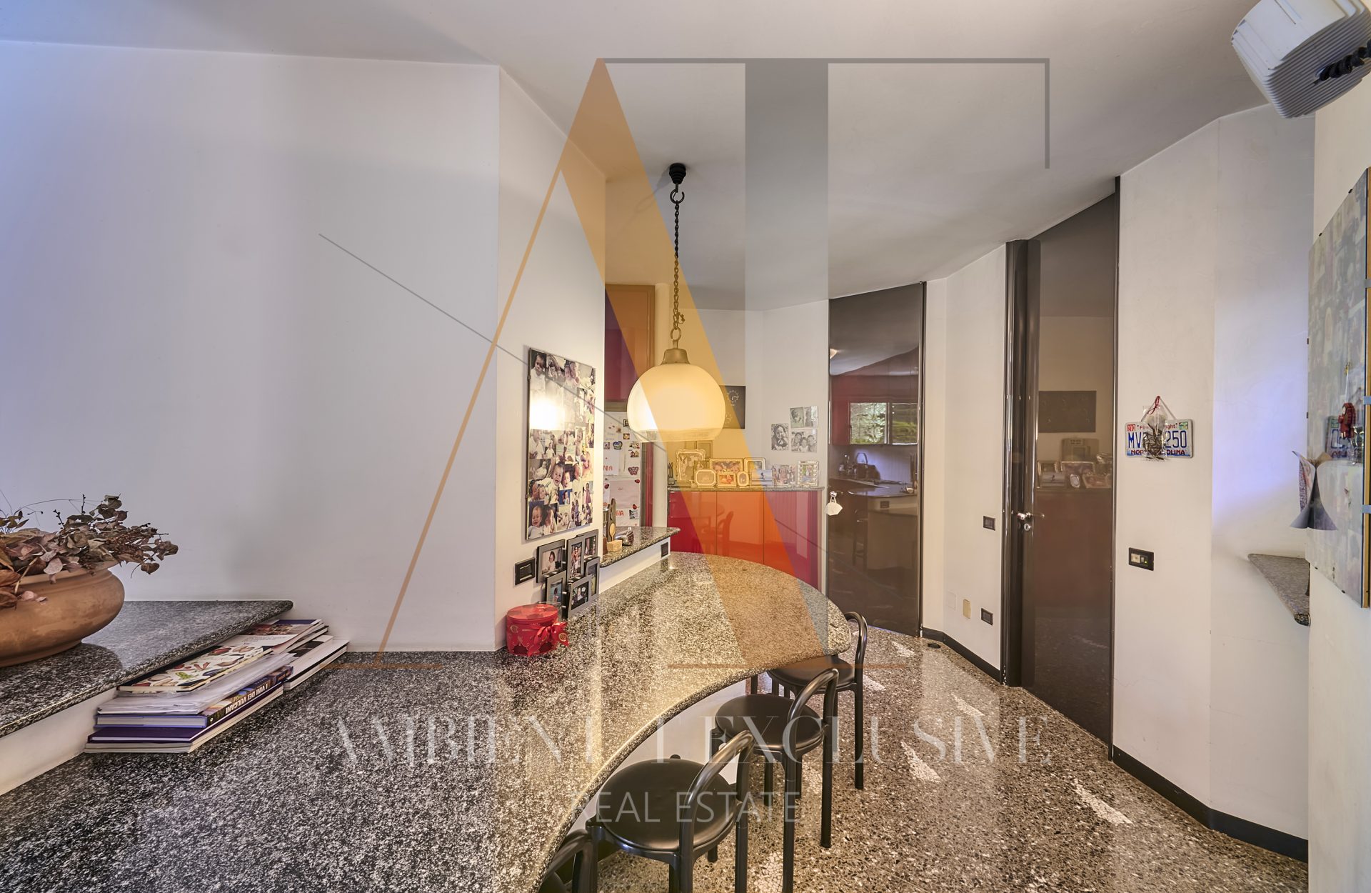 La proprietà, oggetto di reportage su riviste di settore, presenta finiture e arredi su misura di grande pregio: porte interne a tutta altezza e laccate di Lualdi, pavimentazione in marmo a firma dello scultore Somaini https://it.wikipedia.org/wiki/Francesco_Somaini_(scultore) , pavimenti in legno di rovere nella zona notte, arredi fissi su disegno di Caccia Dominioni e realizzati da Airoldi, lampade e sedie di Azucena https://www.azucena.it/it/ per le quali è prevista una possibilità di acquisto per chi volesse mantenere l’impronta originale del progetto.
