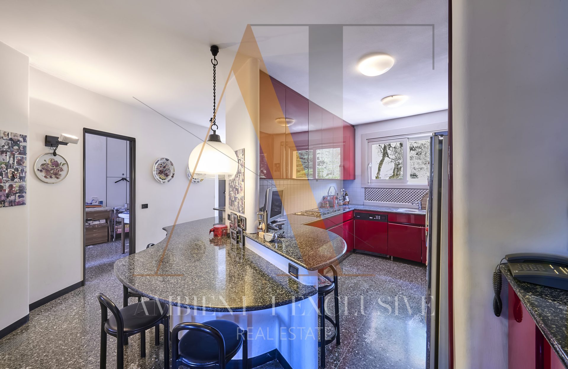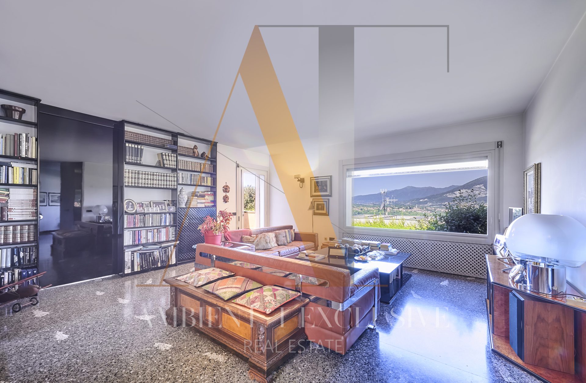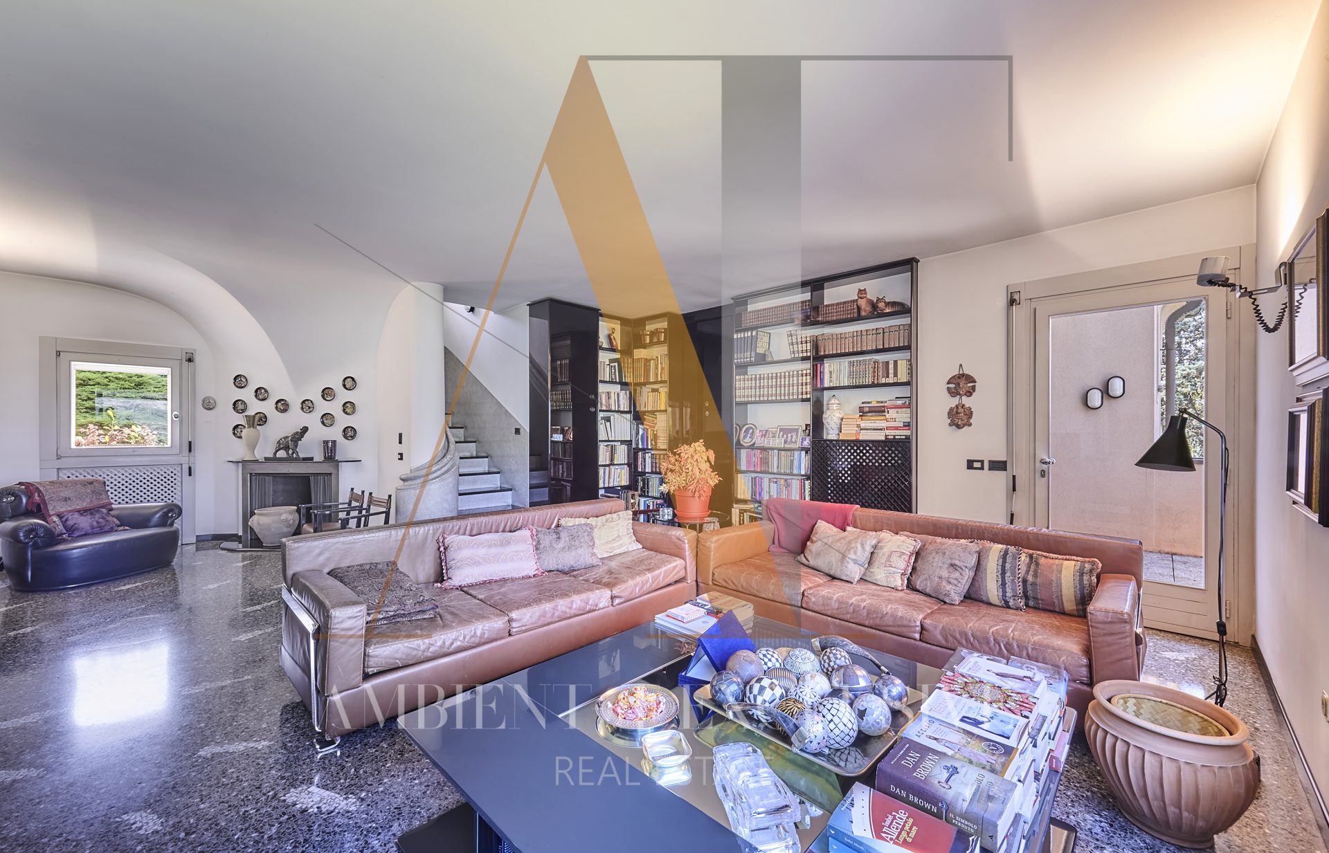 Completano la proprietà tre grandi terrazze, un box doppio e un ampio giardino di circa 3.000 mq con vasche di raccolta per l’acqua piovana per l’irrigazione e sistema di illuminazione sia crepuscolare che a comando.