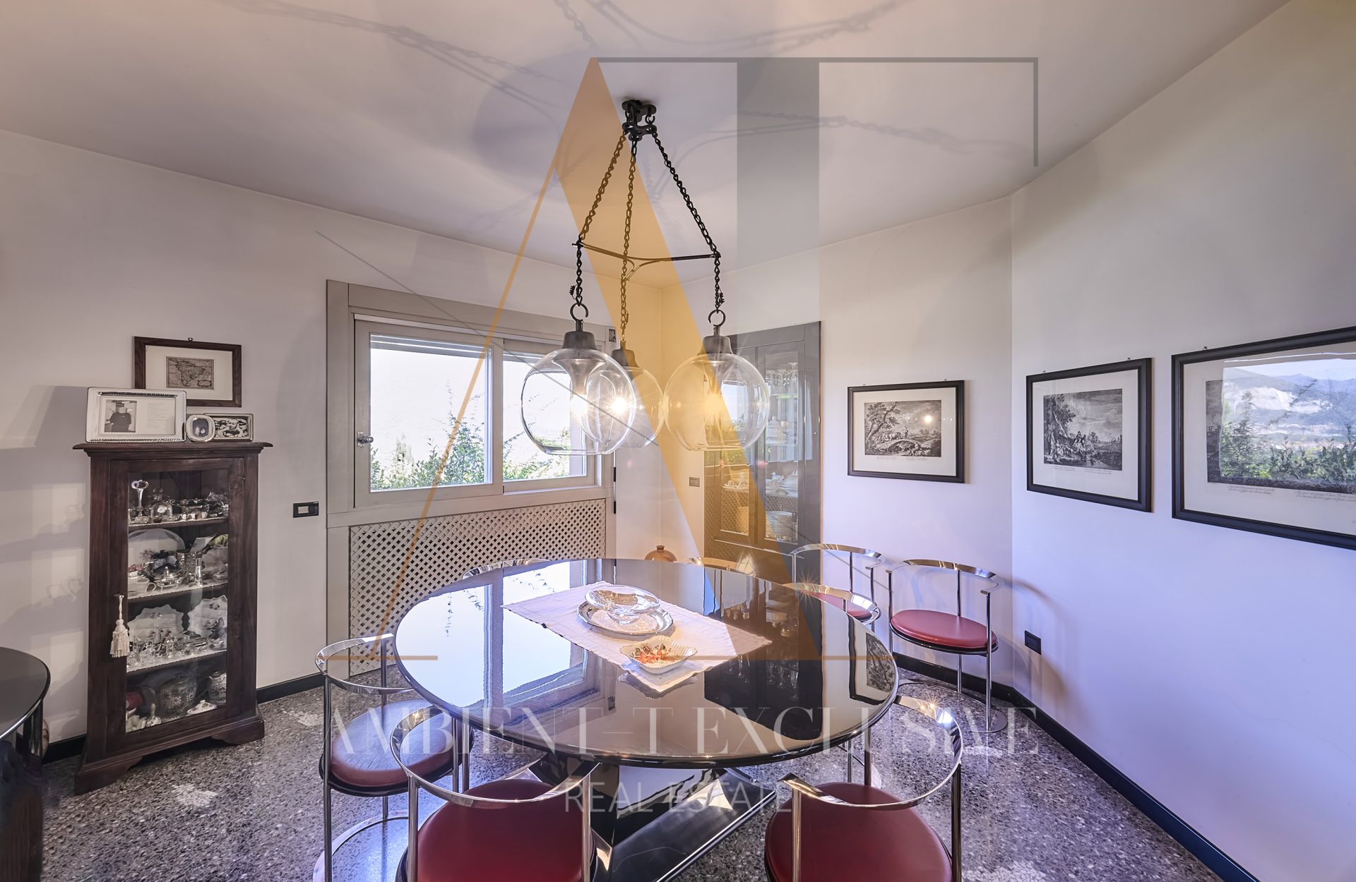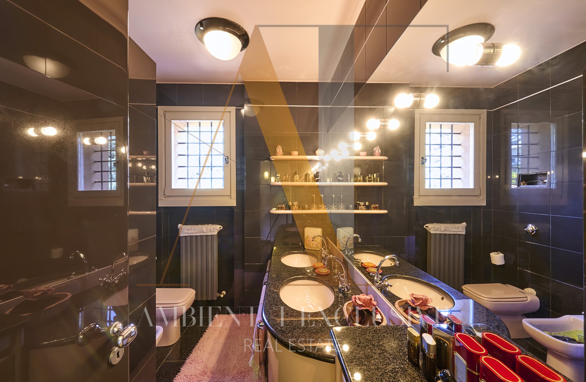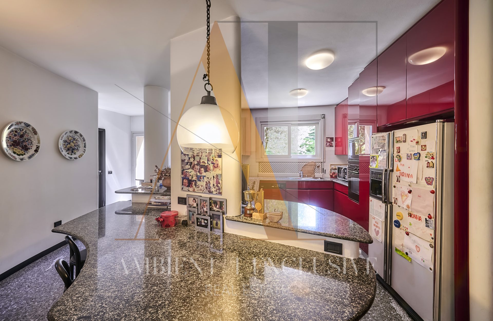 Completano la proprietà tre grandi terrazze, un box doppio e un ampio giardino di circa 3.000 mq con vasche di raccolta per l’acqua piovana per l’irrigazione e sistema di illuminazione sia crepuscolare che a comando.