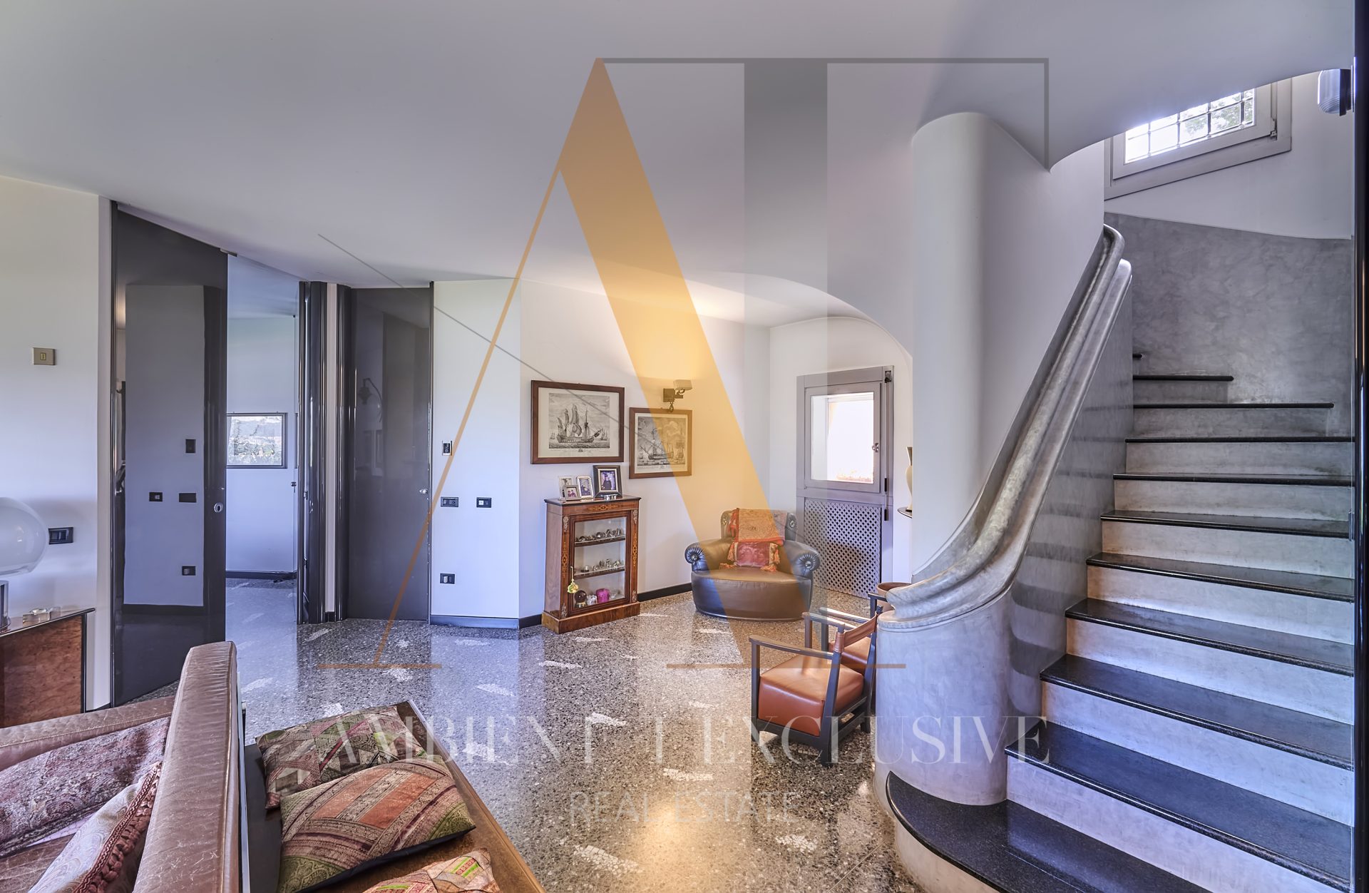 Antesignana del massimo efficientamento termico, la villa è strutturata in cemento armato “tamponato a cappotto” con intercapedine lungo il perimetro interrato e serramenti originali di alta qualità.