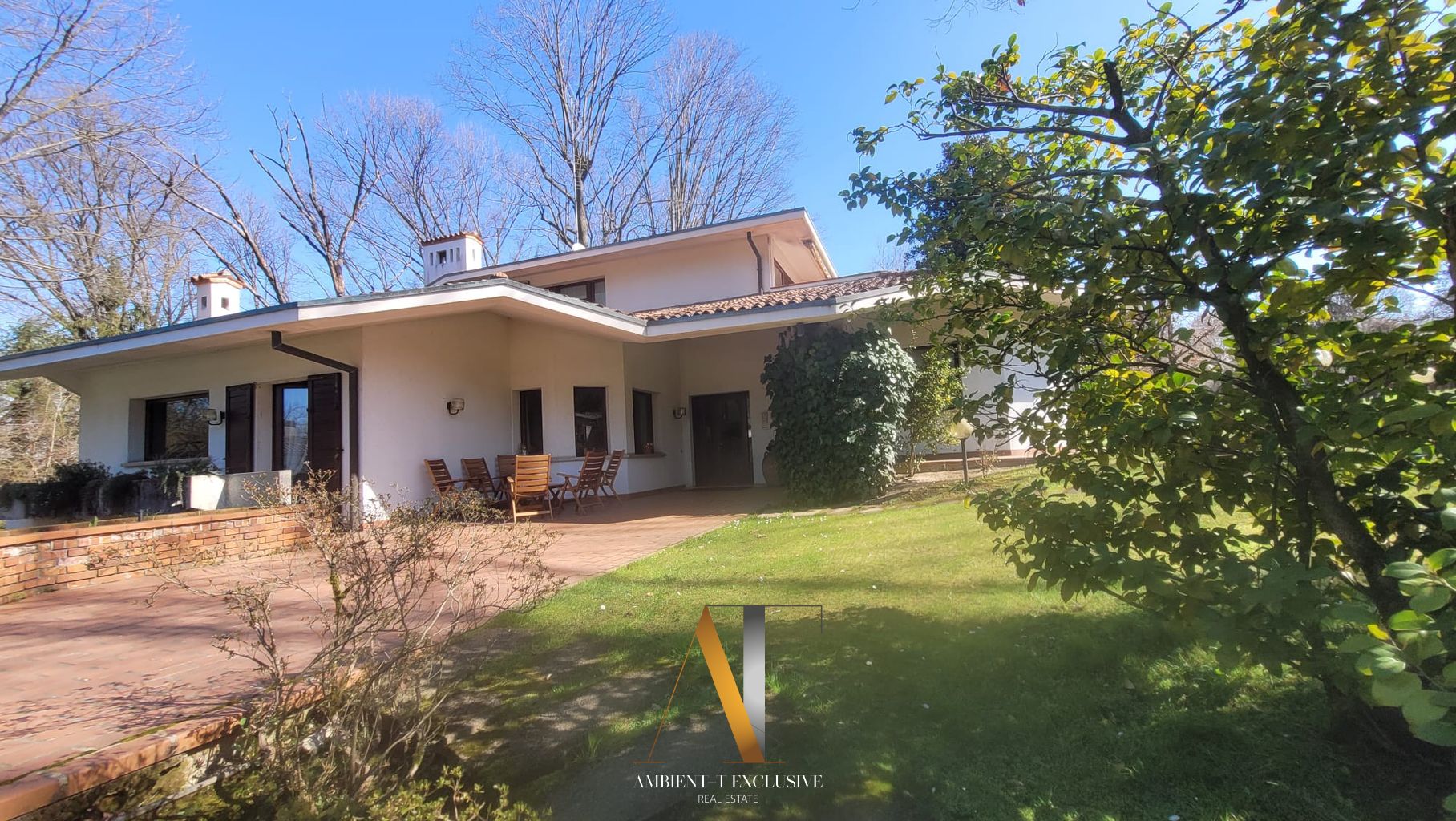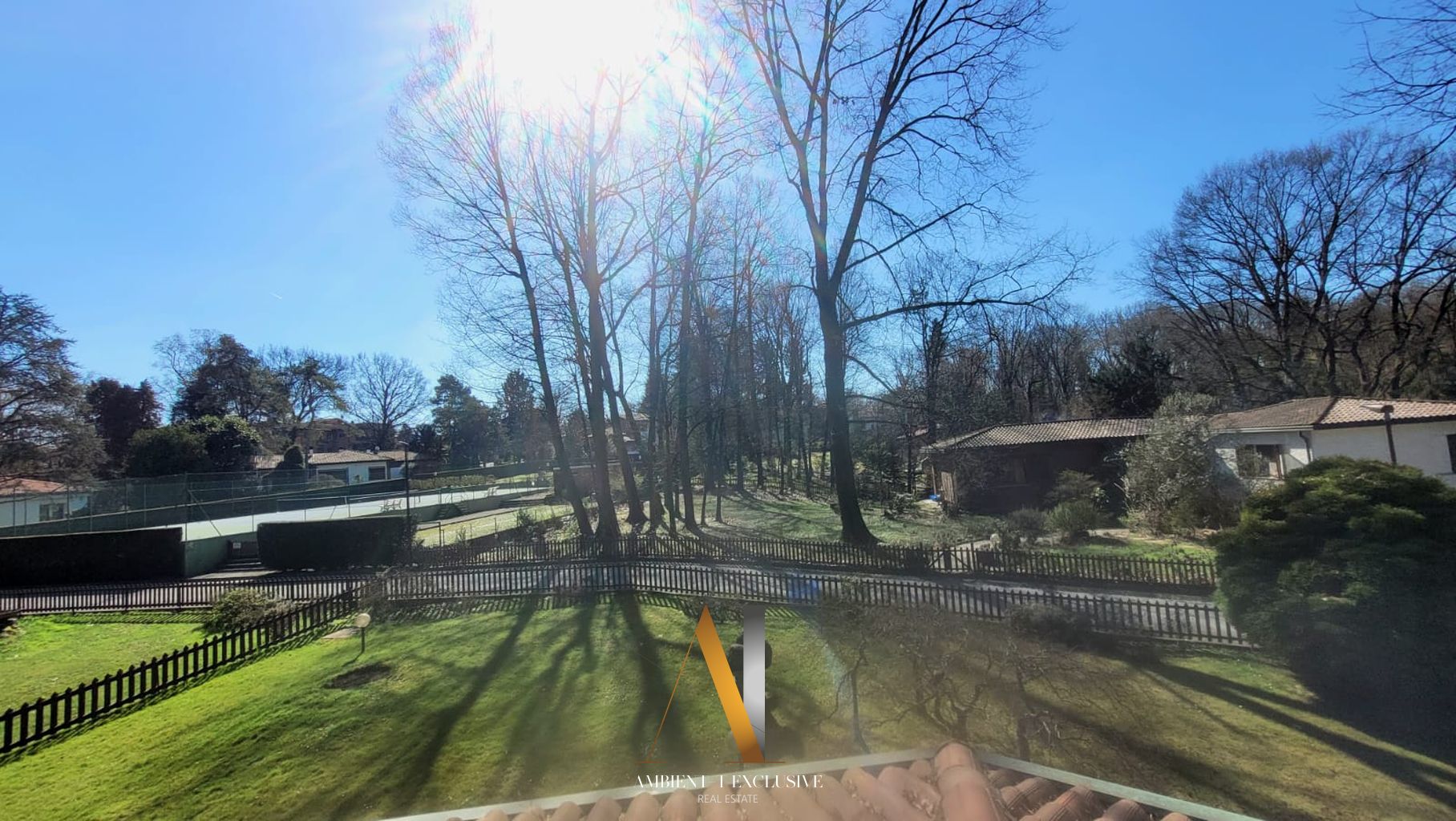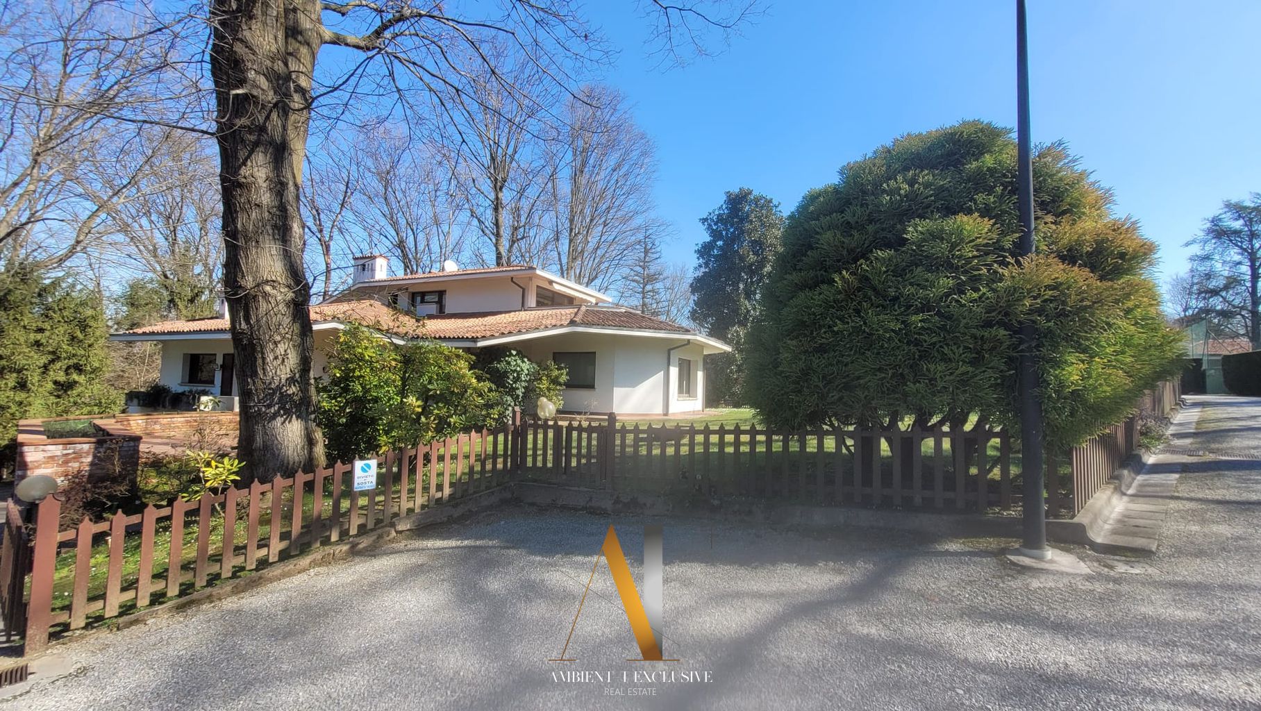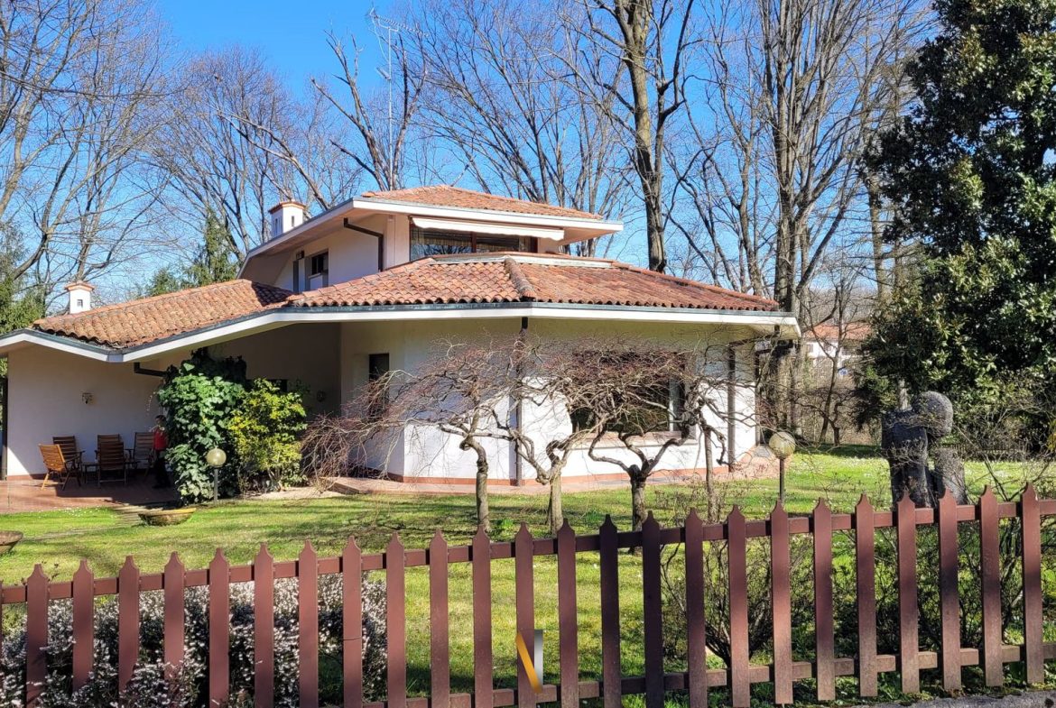 All’interno di un contesto residenziale di grande pregio con tennis, piscina, portineria e composto da sole 10 ville, elegante proprietà di generosa metratura circondata da giardino piantumato e bosco.