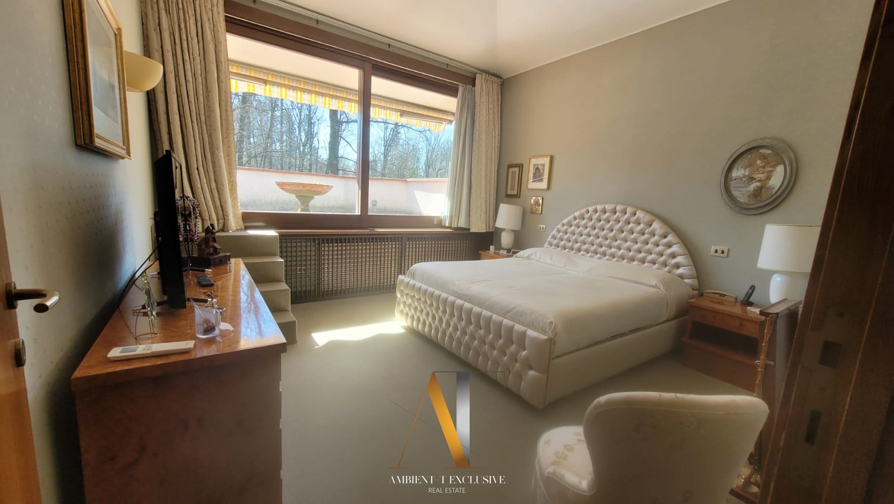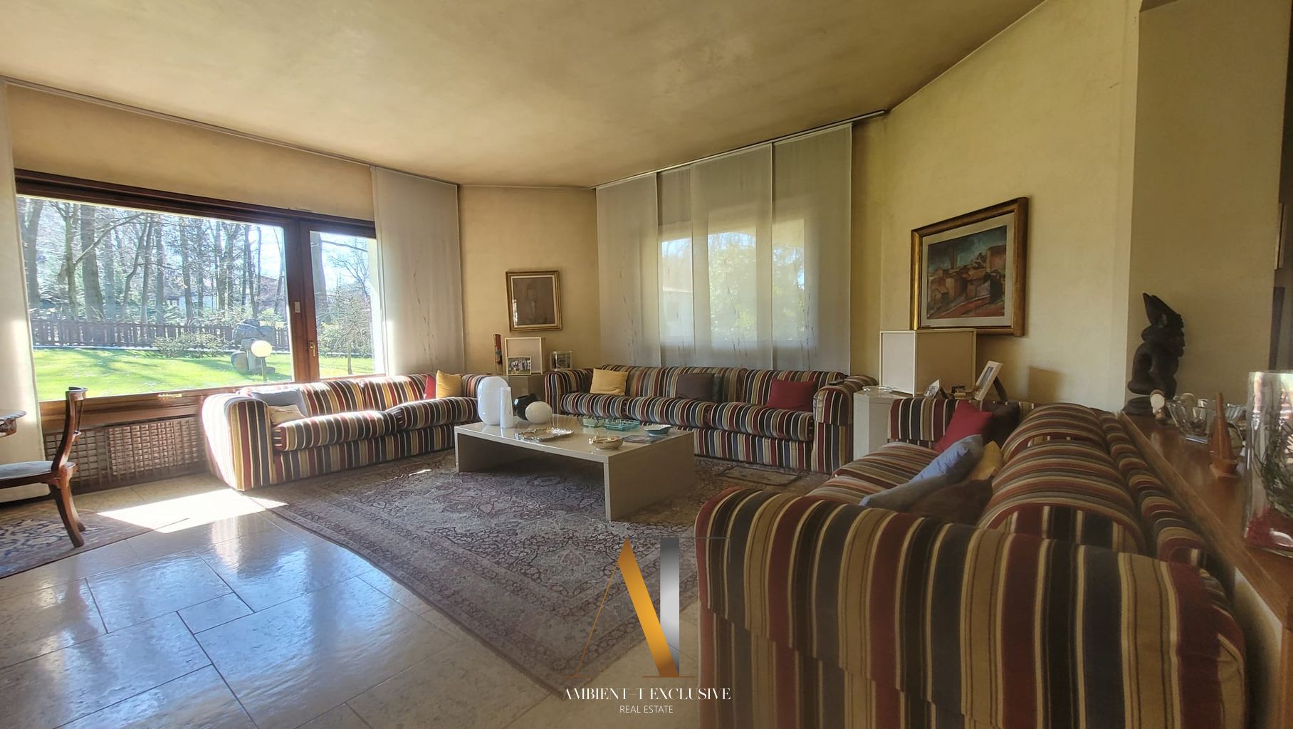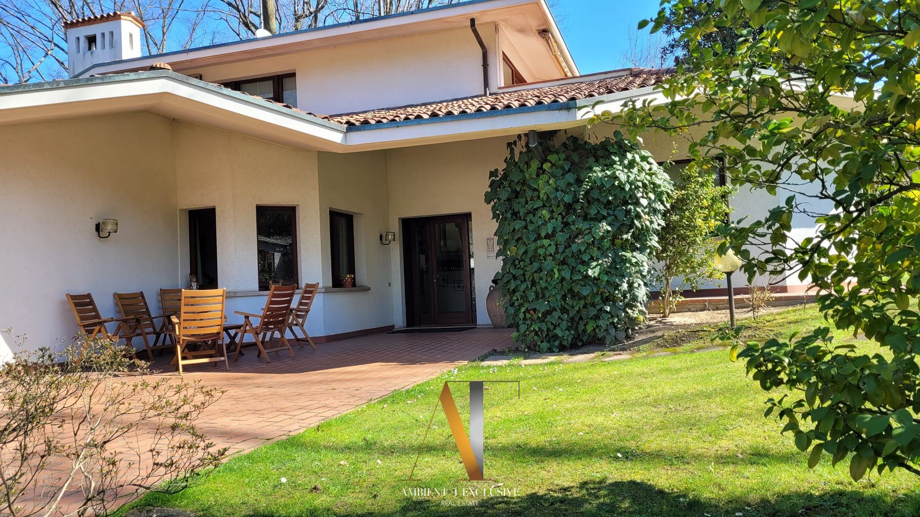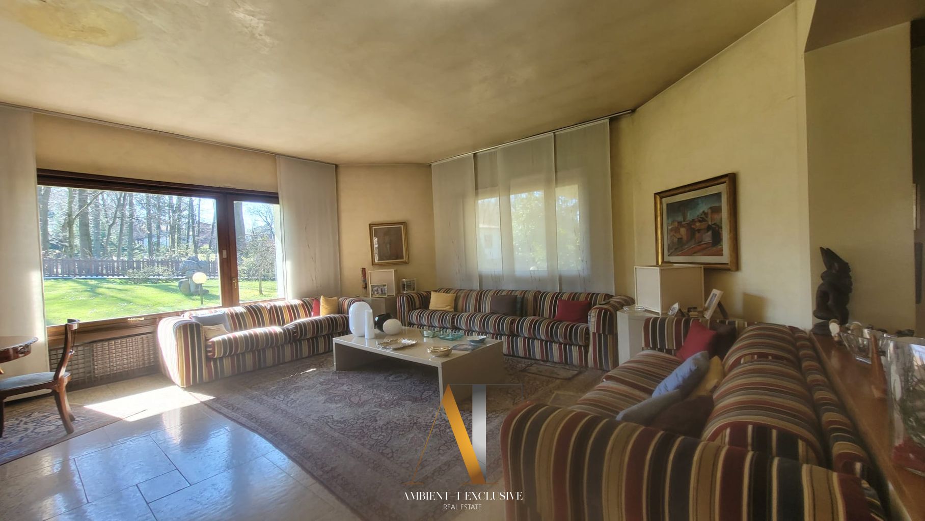 All’interno di un contesto residenziale di grande pregio con tennis, piscina, portineria e composto da sole 10 ville, elegante proprietà di generosa metratura circondata da giardino piantumato e bosco.